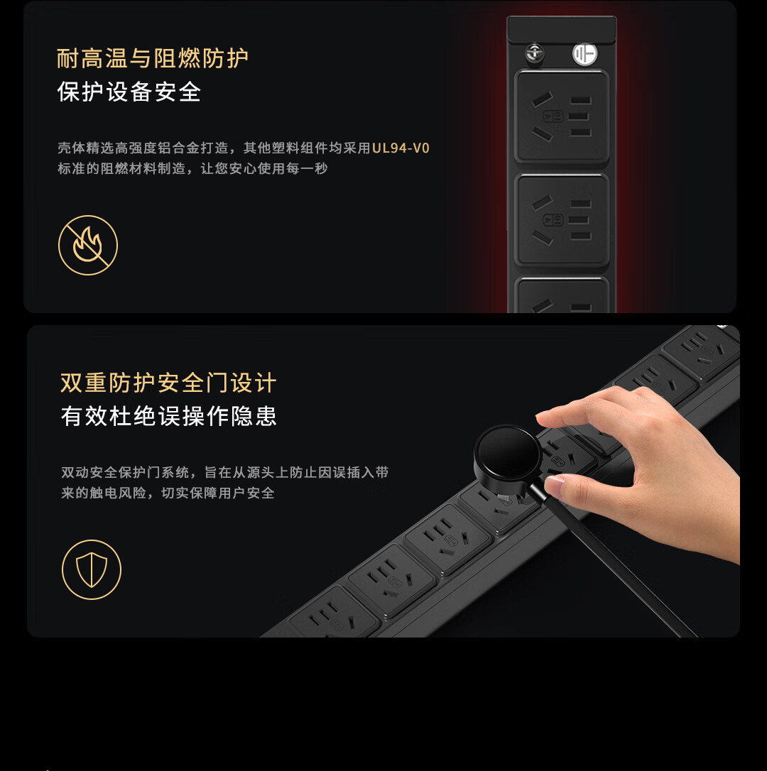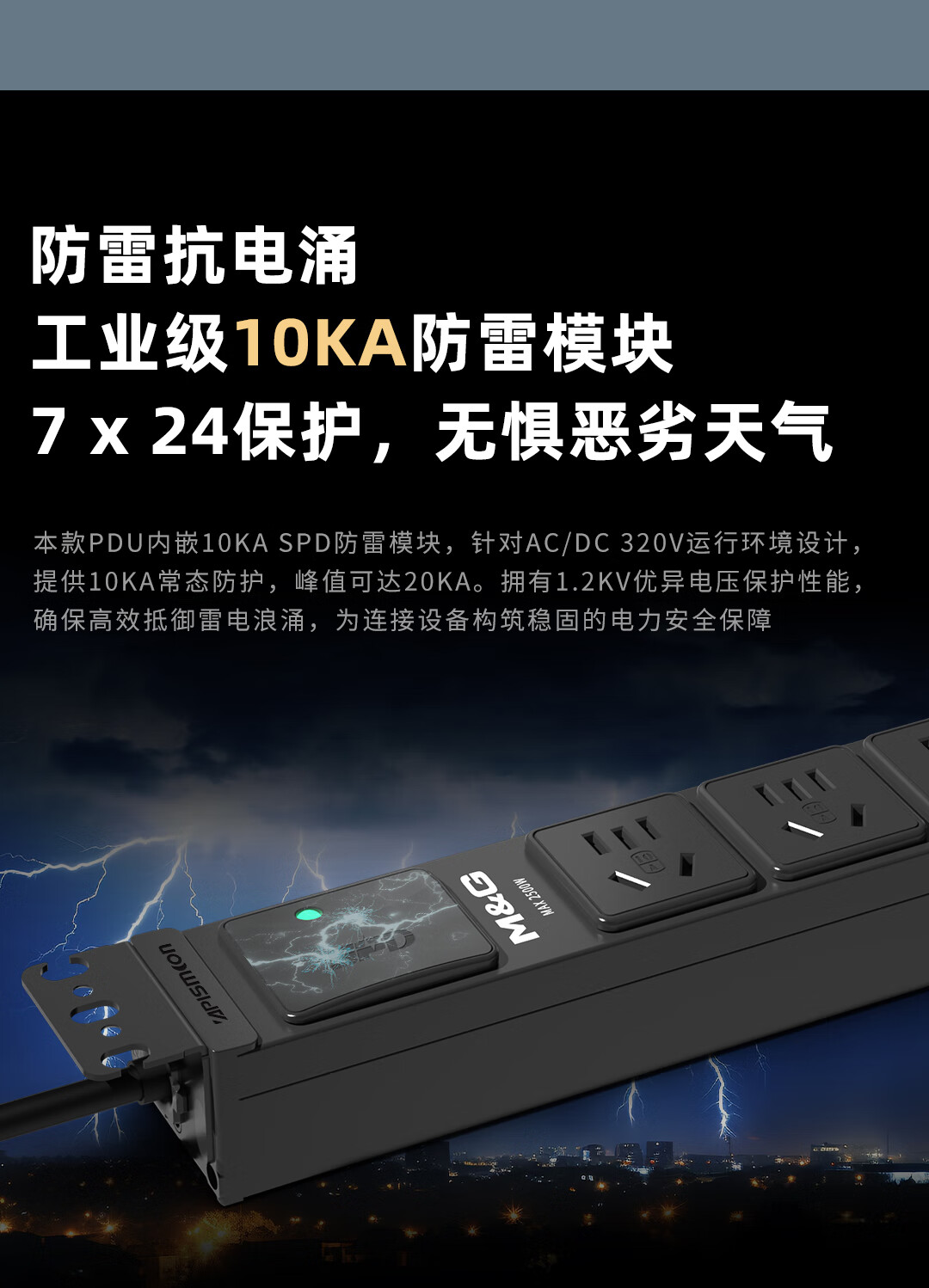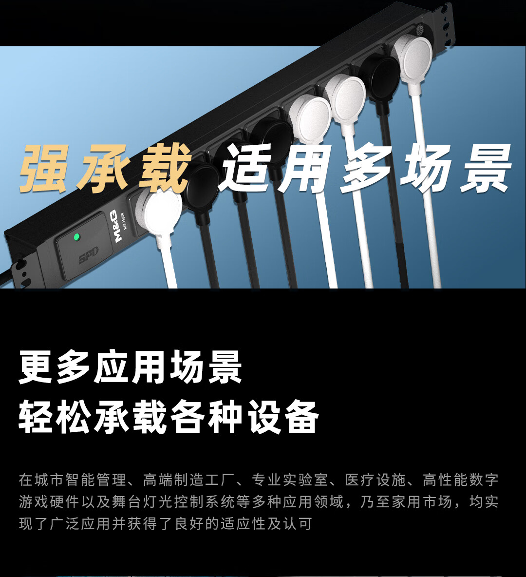 M&G突破PDU机柜插座8位10A国标五孔总控10A输入1平方2米线10A插头07TG200104