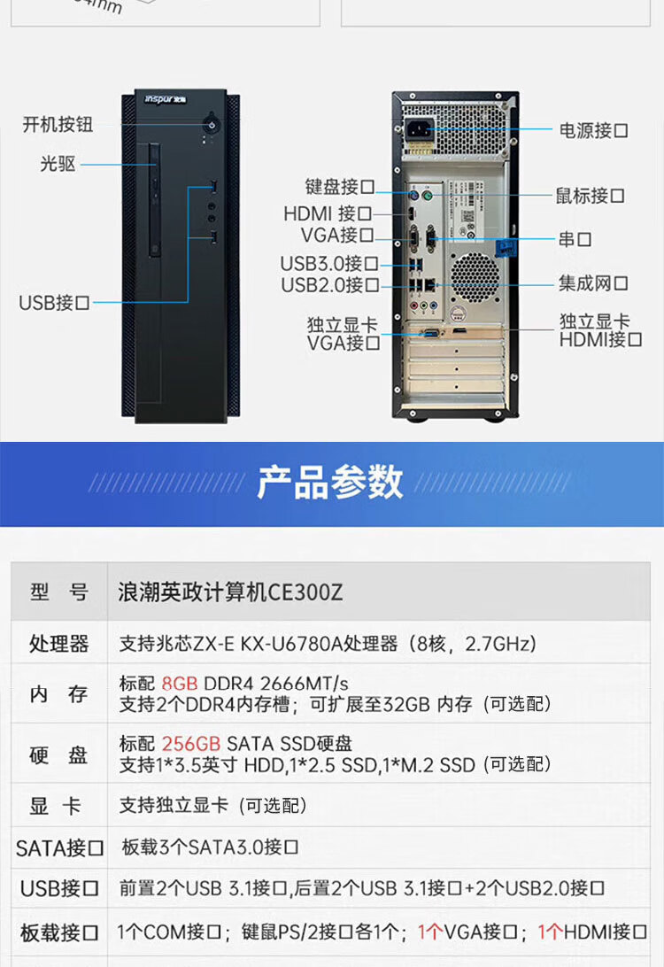 长城TD120A2国产化信创台式机飞腾16G/512G/2G独显DVDRW23.8显示器政企版系统