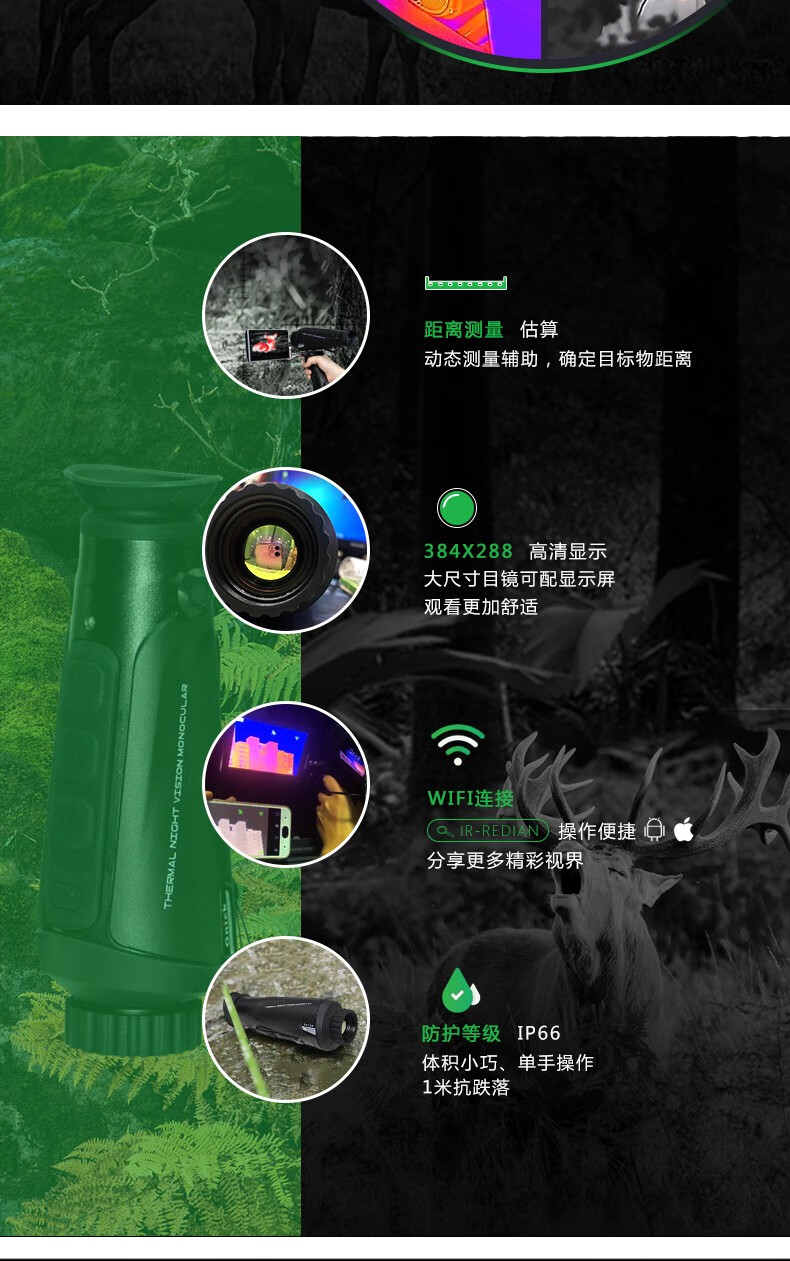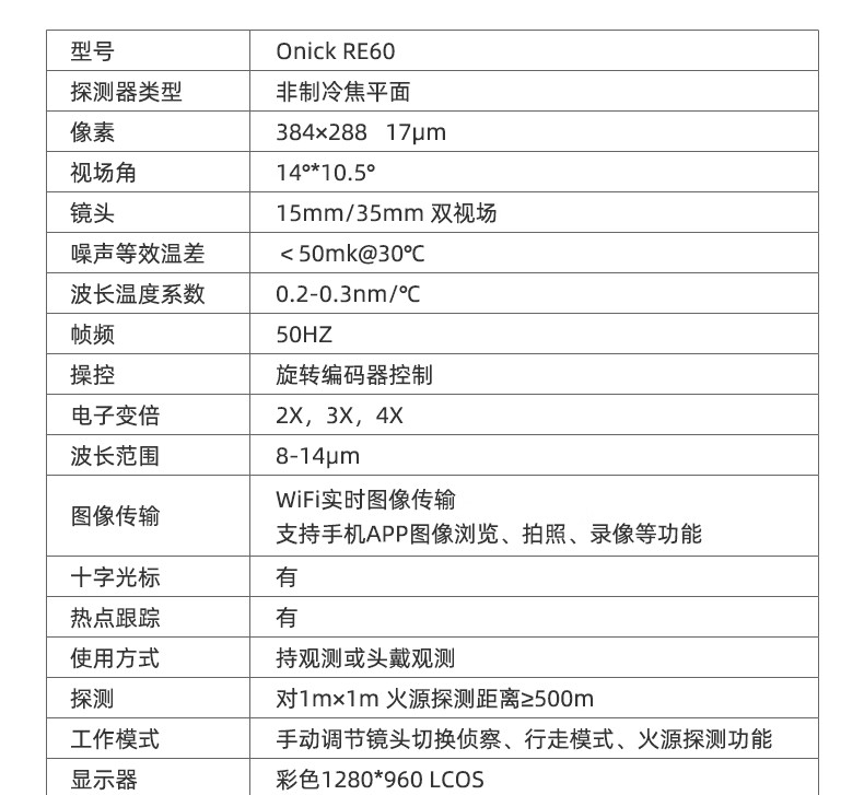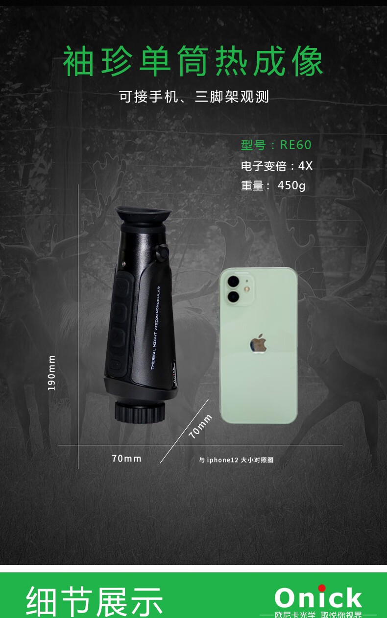 欧尼卡 RE60袖珍型红外热成像夜视仪wifi传输录像拍照图传变倍单筒望远镜