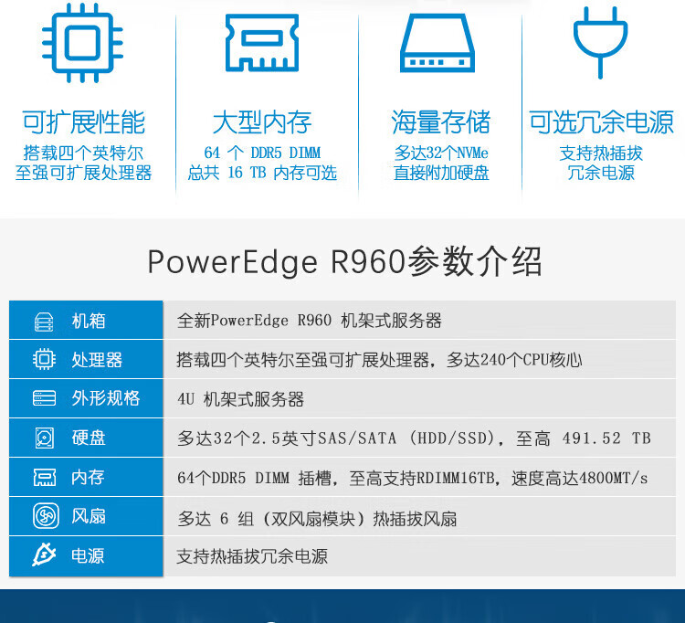 戴尔(DELL)PowerEdge【R760】2U机架式服务器 1*银牌4410Y 12核24线程