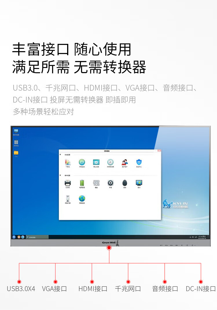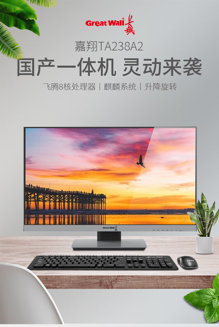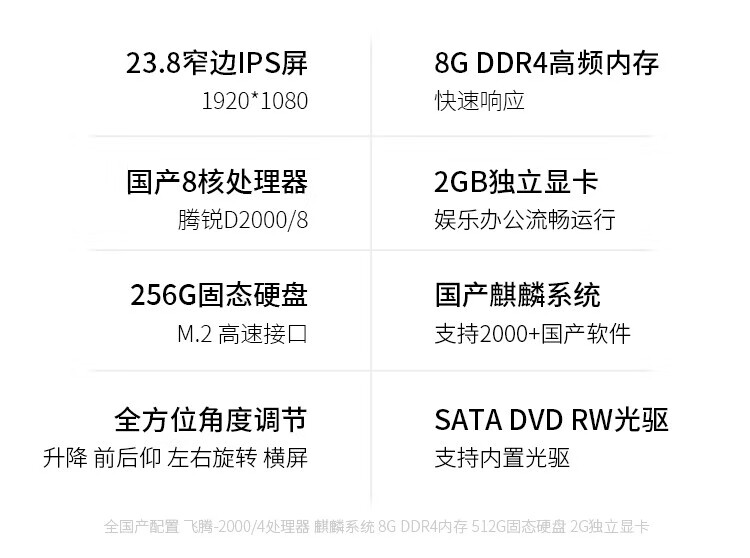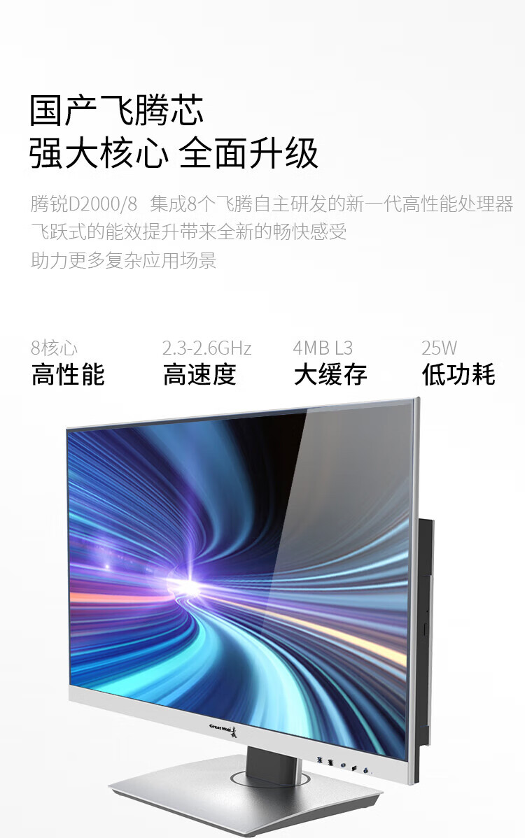 长城TD120A2国产化信创台式机飞腾16G/512G/2G独显DVDRW23.8显示器政企版系统