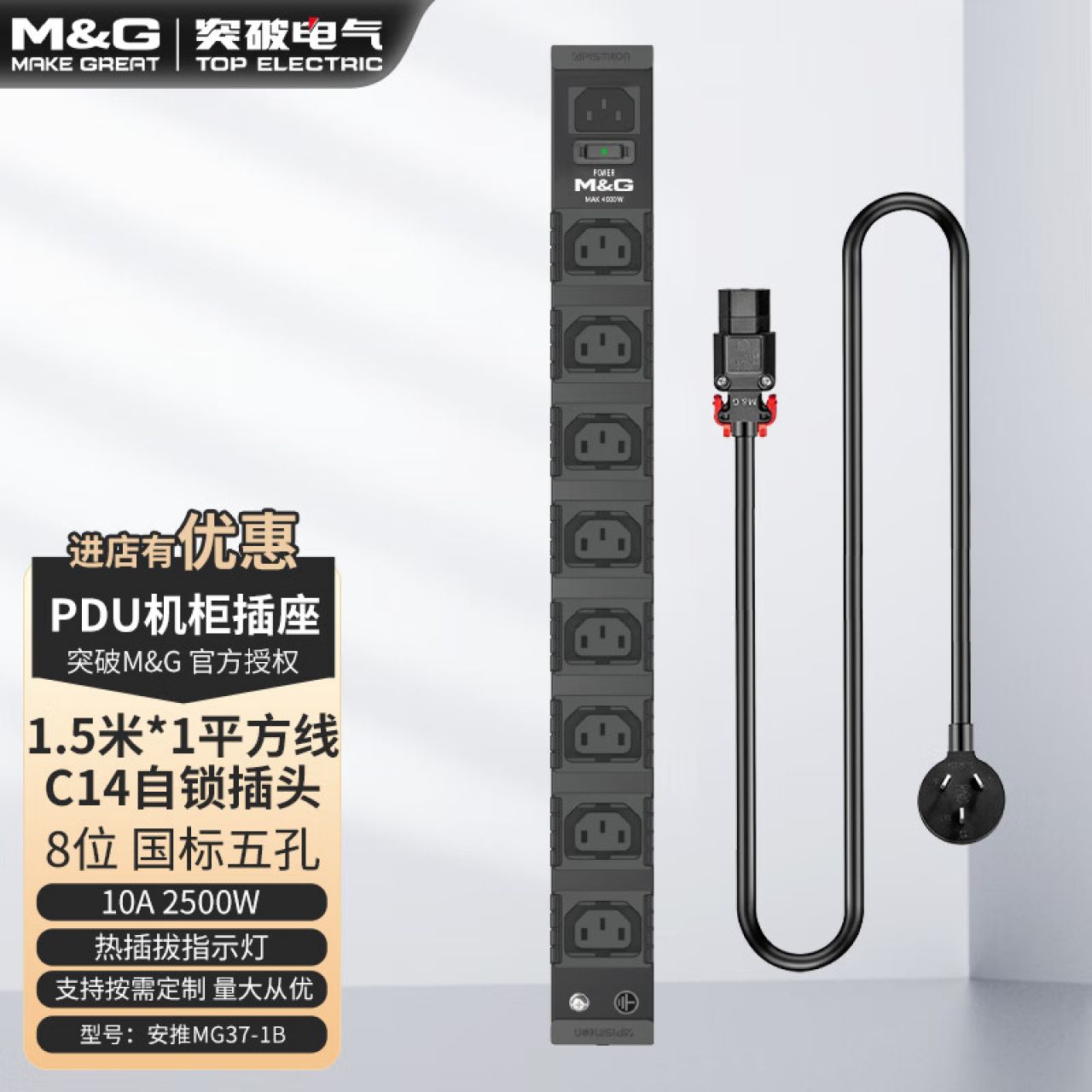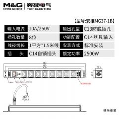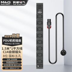 M&G突破PDU机柜插座8位10A国标五孔总控10A输入1平方2米线10A插头07TG200104