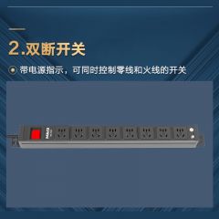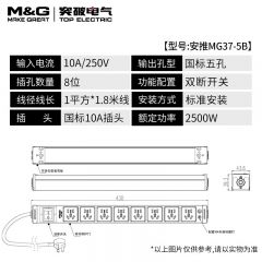 M&G突破PDU机柜插座8位10A国标五孔总控10A输入1平方2米线10A插头07TG200104