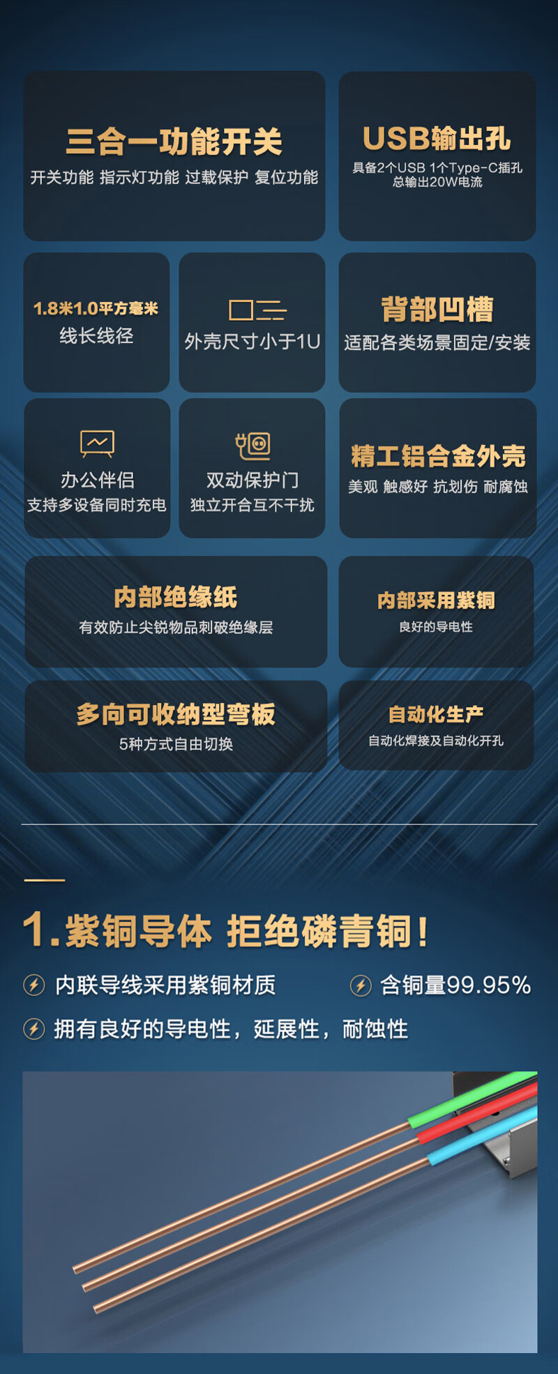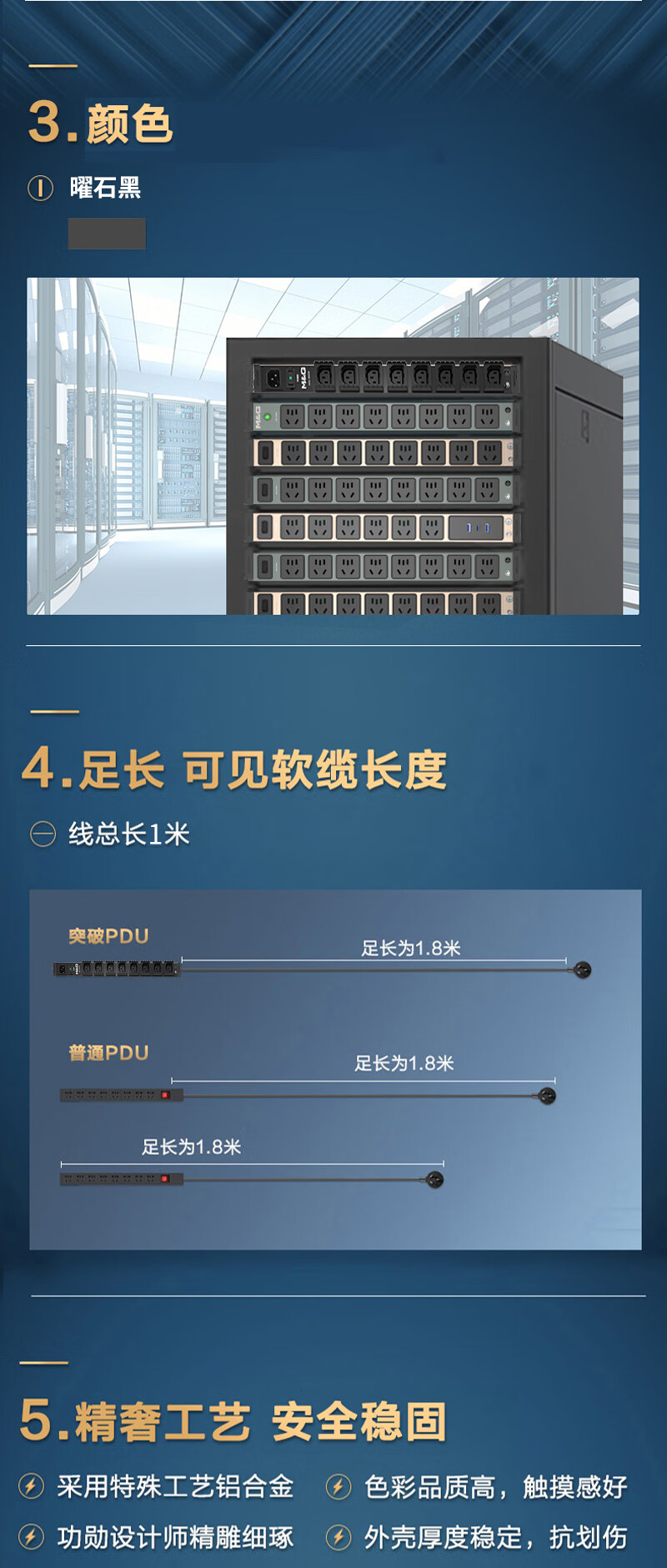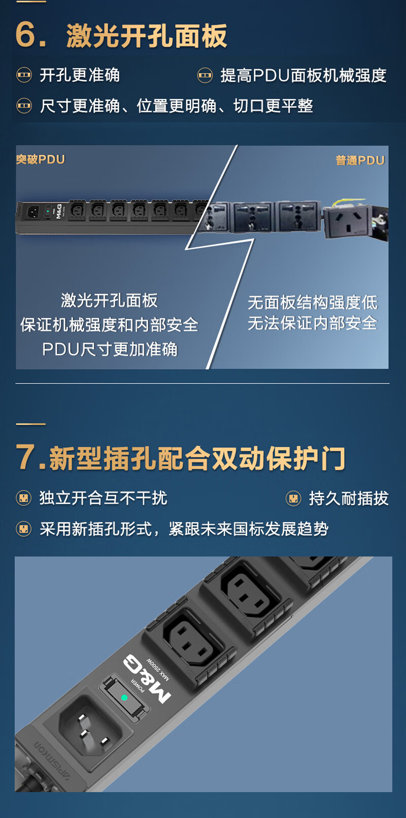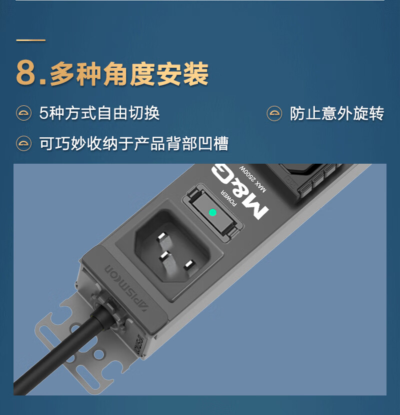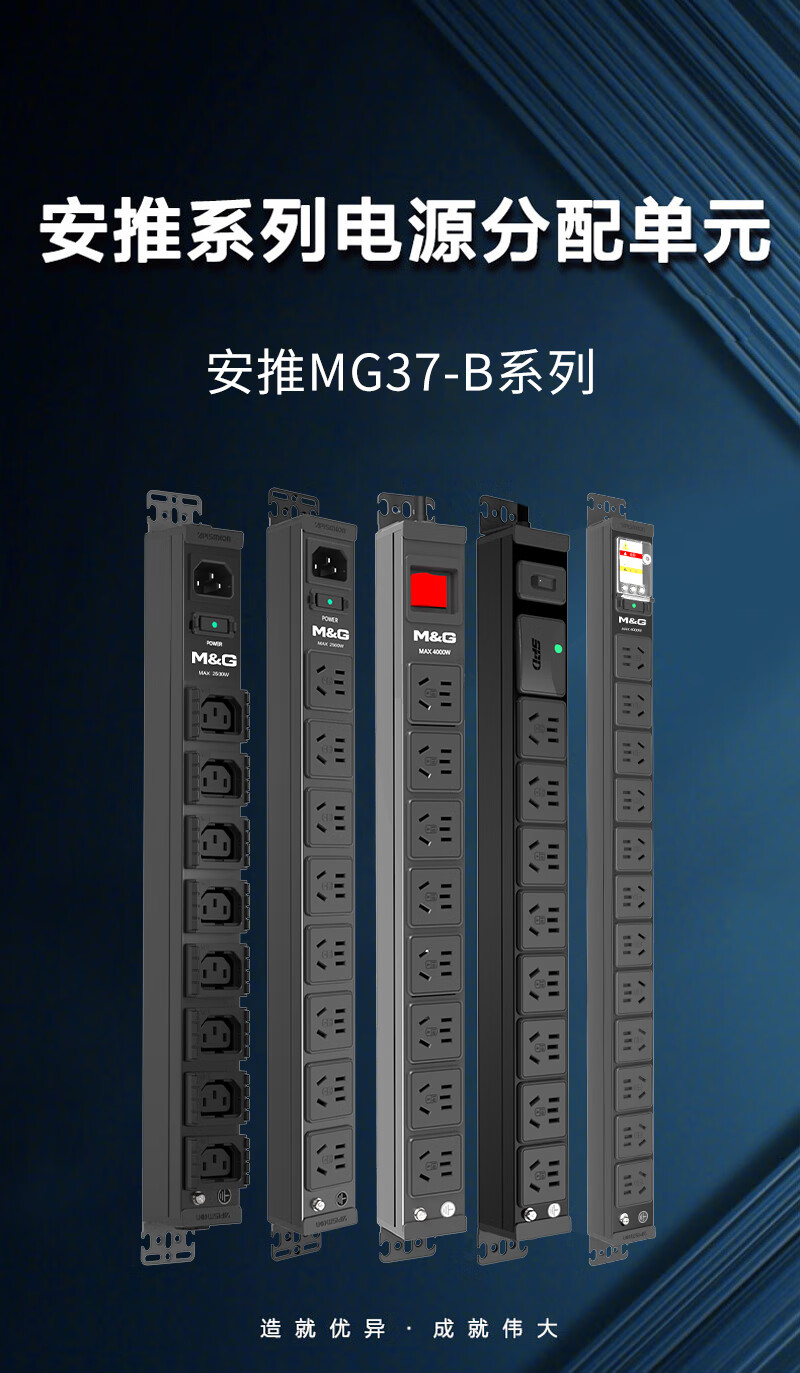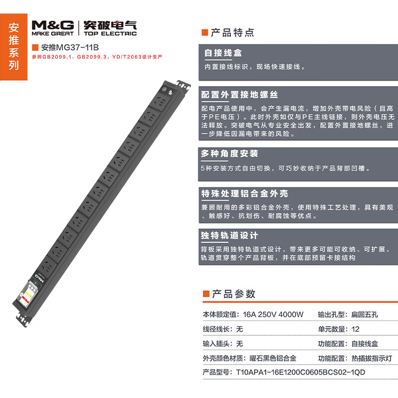 M&G突破PDU机柜插座8位10A国标五孔总控10A输入1平方2米线10A插头07TG200104