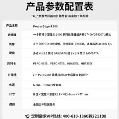 戴尔(DELL)PowerEdge【R360】至强E-2414 16G内存丨2TB企业级硬盘