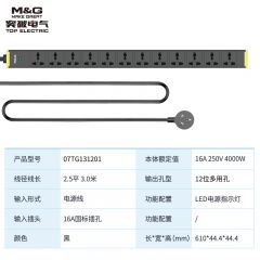 突破(M&G)机柜插座/插线板/12孔位/16A输入/竖装上进线右装/PDU07TG131201