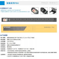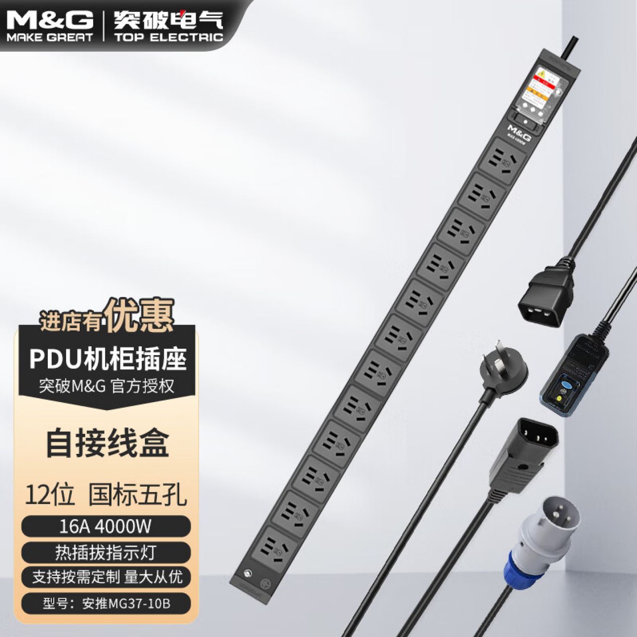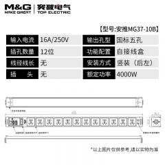 M&G突破PDU机柜插座8位10A国标五孔总控10A输入1平方2米线10A插头07TG200104