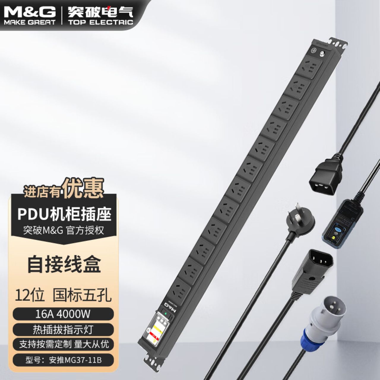 M&G突破PDU机柜插座8位10A国标五孔总控10A输入1平方2米线10A插头07TG200104