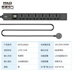 突破(M&G)机柜插座/插线板/插排/排插/接线板2米线6孔位/PDU02TG120201
