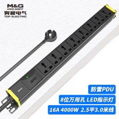 M&G突破PDU机柜插座8位10A国标五孔总控10A输入1平方2米线10A插头07TG200104