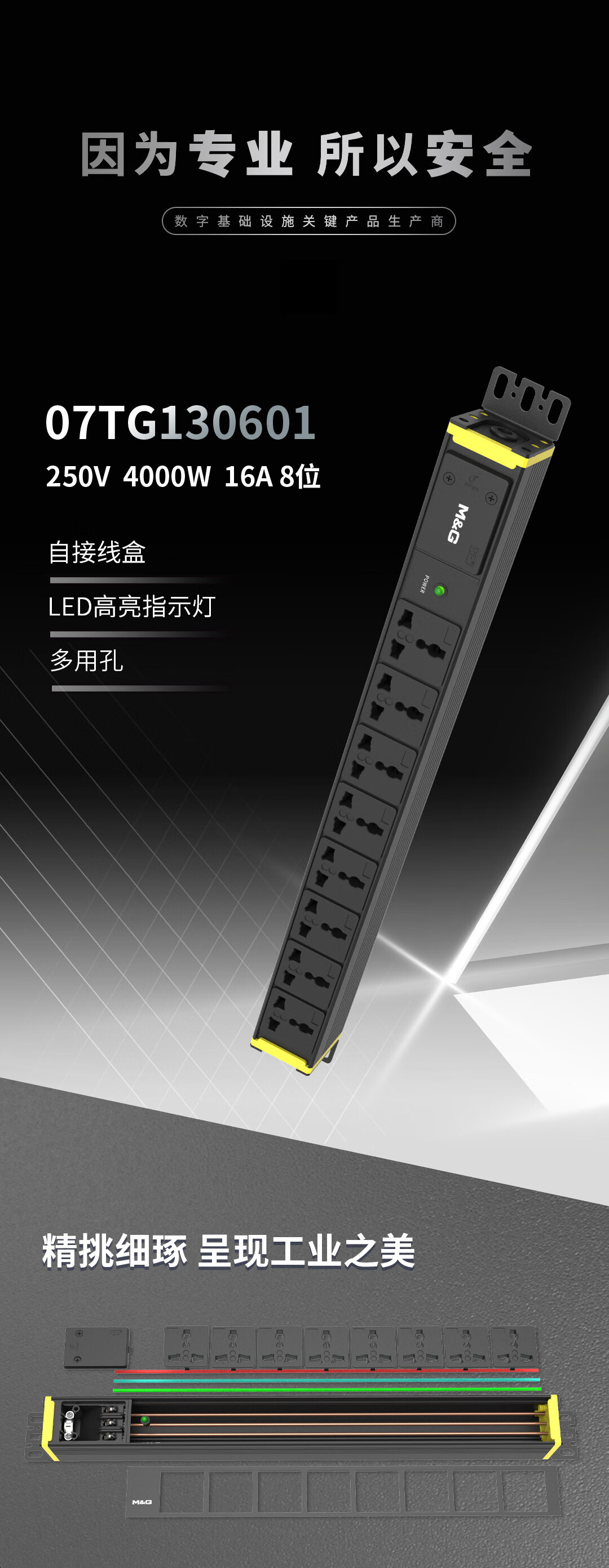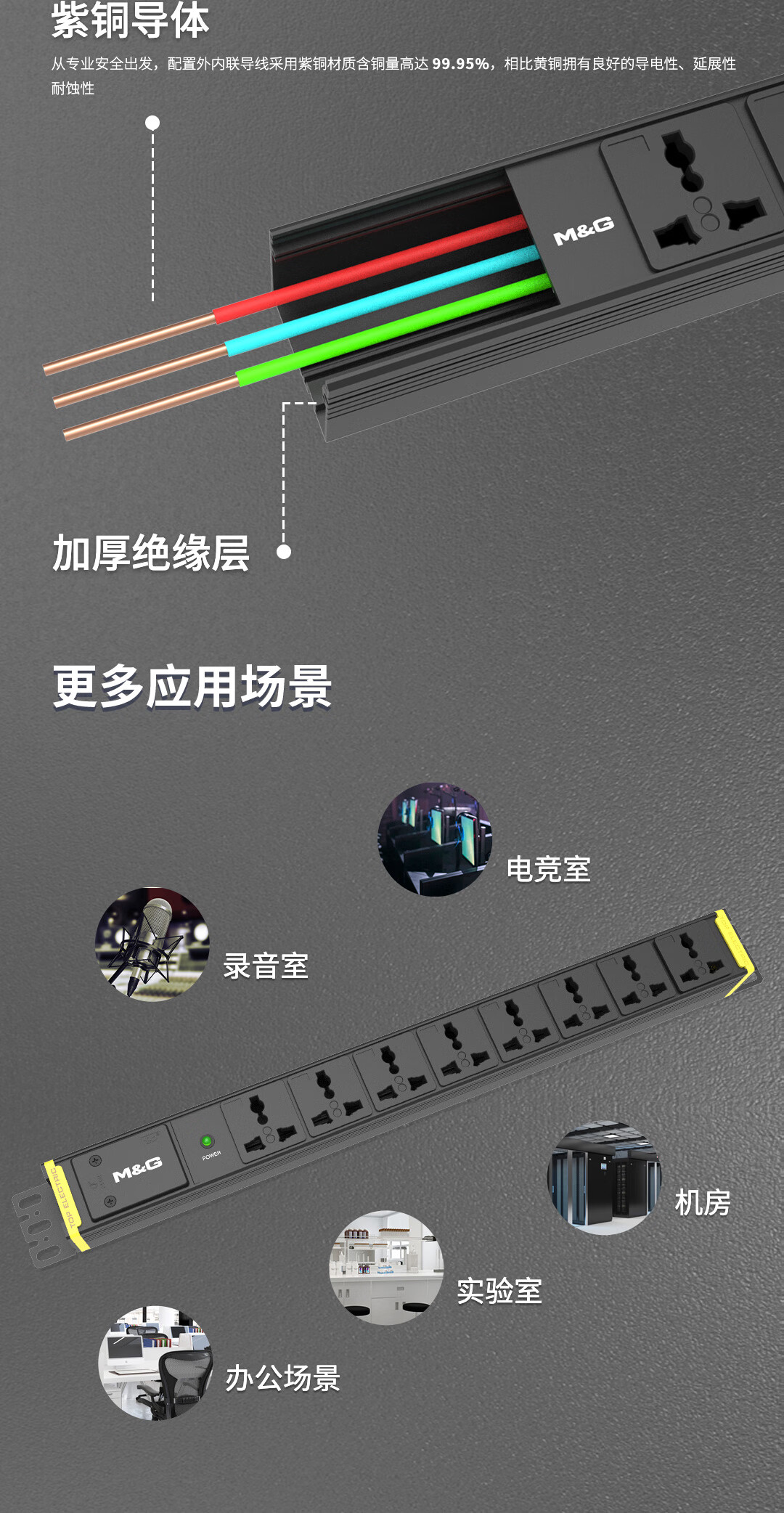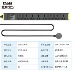 M&G突破PDU机柜插座8位10A国标五孔总控10A输入1平方2米线10A插头07TG200104