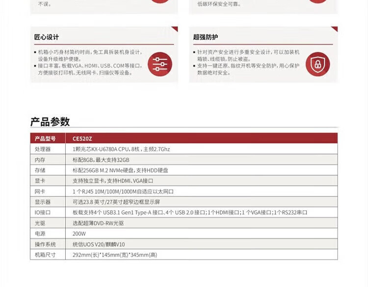 长城TD120A2国产化信创台式机飞腾16G/512G/2G独显DVDRW23.8显示器政企版系统