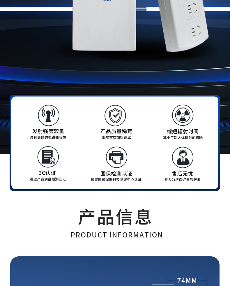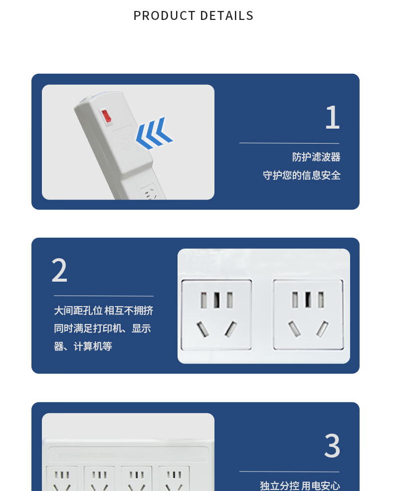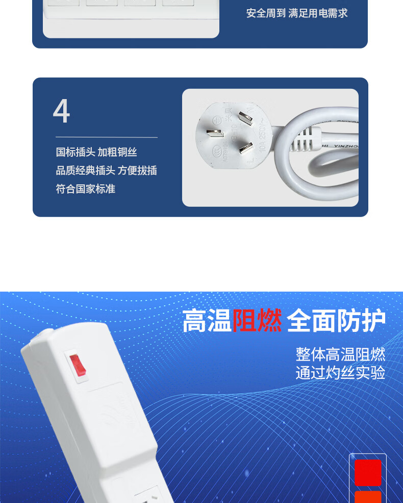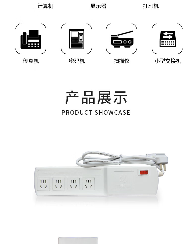 M&G突破PDU机柜插座8位10A国标五孔总控10A输入1平方2米线10A插头07TG200104