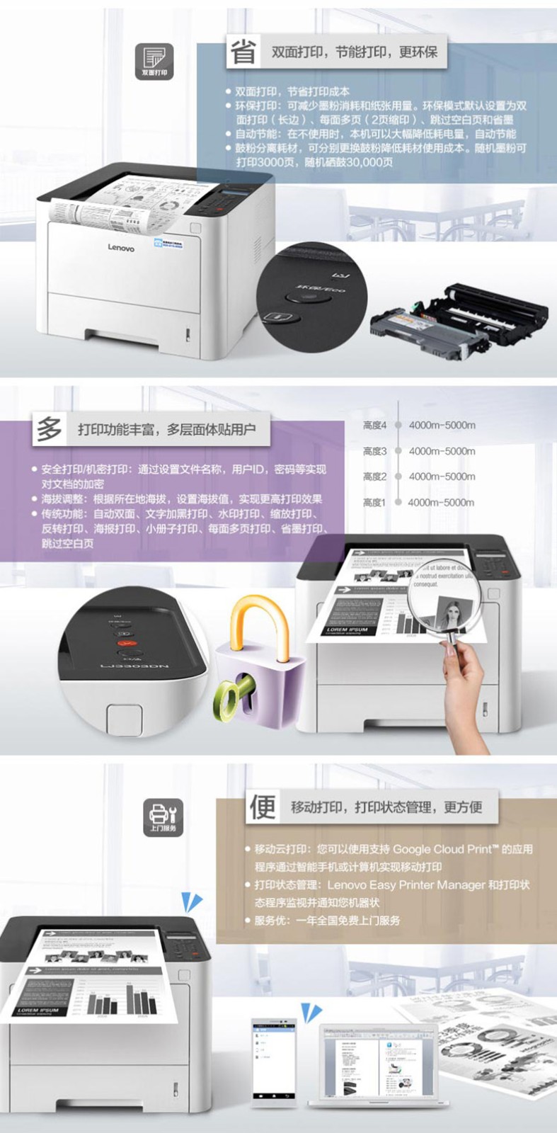 首页> 电脑办公/ 相机/ DIY> 办公打印> 打印机> 联想 LJ3803DN 黑白激光打印机 38页/分钟高速打印 有线网络自动双面 办公商用 企业优选