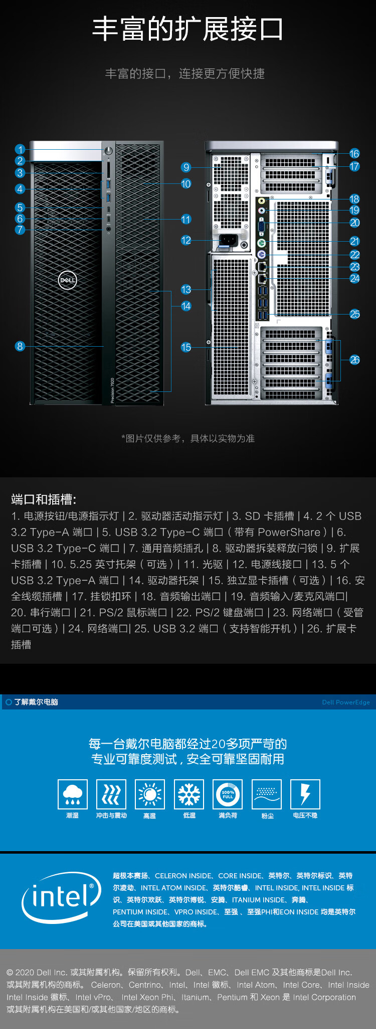 戴尔(DELL)PowerEdge【T550】塔式服务器 2*银牌431640核2.3G/2*2TB