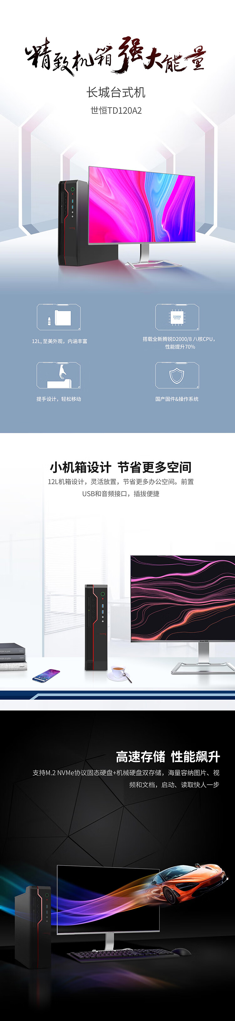长城TD120A2国产化信创台式机飞腾16G/512G/2G独显DVDRW23.8显示器政企版系统
