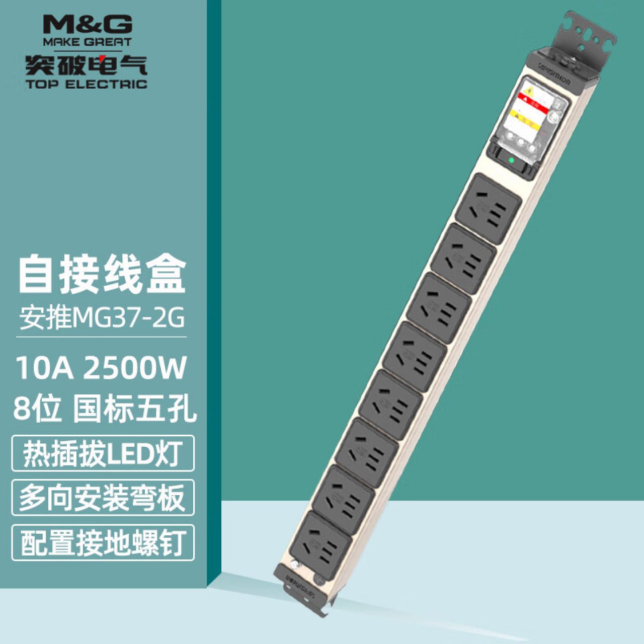 M&G突破PDU机柜插座8位10A国标五孔总控10A输入1平方2米线10A插头07TG200104