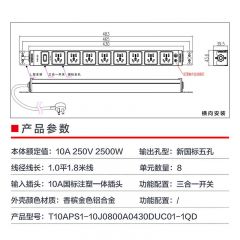 M&G突破PDU机柜插座8位10A国标五孔总控10A输入1平方2米线10A插头07TG200104