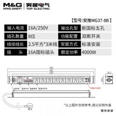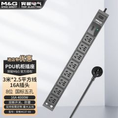 M&G突破PDU机柜插座8位10A国标五孔总控10A输入1平方2米线10A插头07TG200104